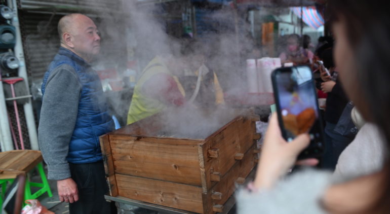 2025 02.01 南天宮的米血糕 / pig’s blood cake taiwanyaeyama 台湾 Share Hatena 配合春節,南方澳的南天宮方給大家米血糕。蒸氣給帶來一種溫暖的氣氛了。On the lunar new year, Nan Tian Gong temple at Nanfangao, Suao, Yilan, gave everyone a pig’s blood cake, one of the local foods. Share Hatena Post navigation 前の記事 次の記事 関連記事 カメもち作りの名手/台湾のお米文化圏で培ったもの(… 日常か、非日常か 私は台湾のばあちゃんのことを知らない 信仰とリスクマネジメント 指図されるまま南へ/「龍の山の寺」にたどりつく 「神様が選んでる」の意味/石垣島の台湾人と対話する… 台湾の観光客に慕われる石垣島の土地公廟 シュガートレインの廃線跡/疎開者の足取りを探して 「わからない」が分からない 八重山の台湾人のことば… コメントは利用できません